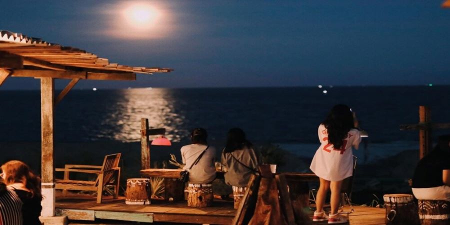 Đây là quán cà phê ven biển phù hợp cho tụ họp gia đình vào những dịp cuối tuần. Vào buổi tối, tại đây rất mát mẻ với những đợt gió biển và ngắm trăng cũng là hoạt động thư giãn dành cho gia đình. Đừng quên lưu lại quán cà phê này nếu bạn có ý định du lịch Phan Thiết 2 ngày 1 đêm nhé!