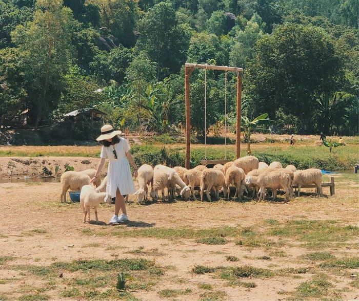 Đến với cánh đồng gần 100 con cừu, bạn có thể bồng bế, vuốt ve bộ lông mềm mại và chơi đùa thoả thích cùng những con vật dễ thương. Xung quanh đồng cừu còn có bàn ghế, nhà sàn, cầu nhỏ... được làm từ tre, gỗ thân thiện, gần gũi với thiên nhiên.Để thoả mãn "tâm hồn sống ảo" của giới trẻ, đồng cừu Suối Tiên còn có thêm nhiều tiểu cảnh xinh xắn như xích đu, thuyền... Tất cả tạo nên những góc check-in chất lừ, giúp bạn tậu về nhiều tấm ảnh xịn xò. Bạn đừng quên bấm máy chụp ảnh liên tục để ghi lại những khoảnh khắc đẹp tự nhiên ở đây.